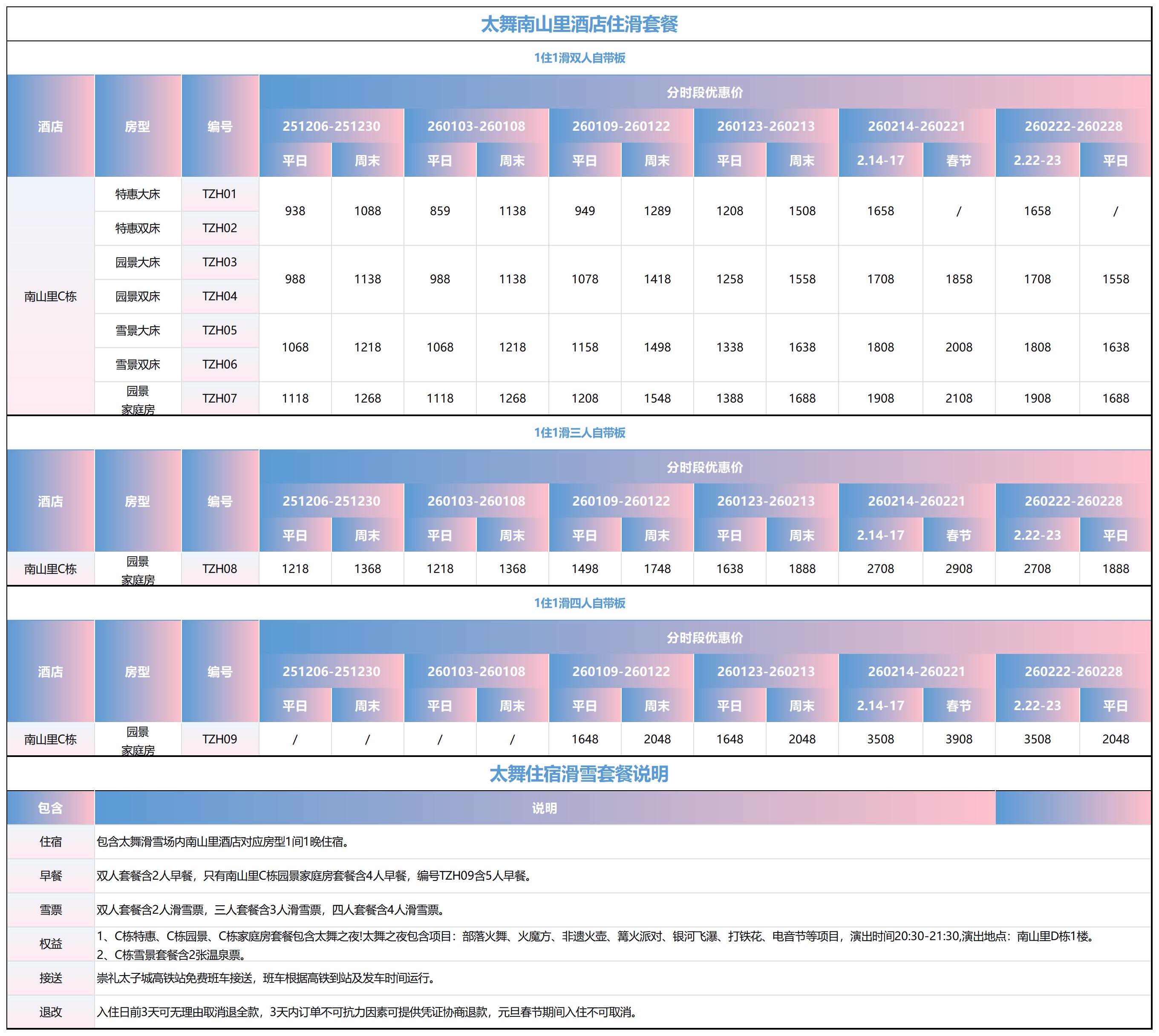太舞滑雪场住滑套餐价格详情