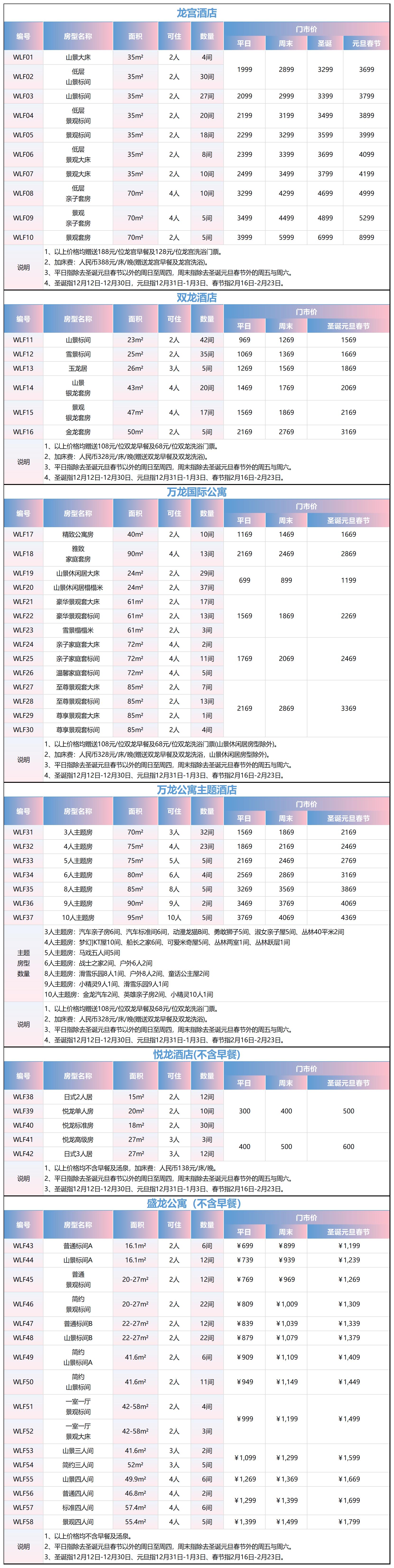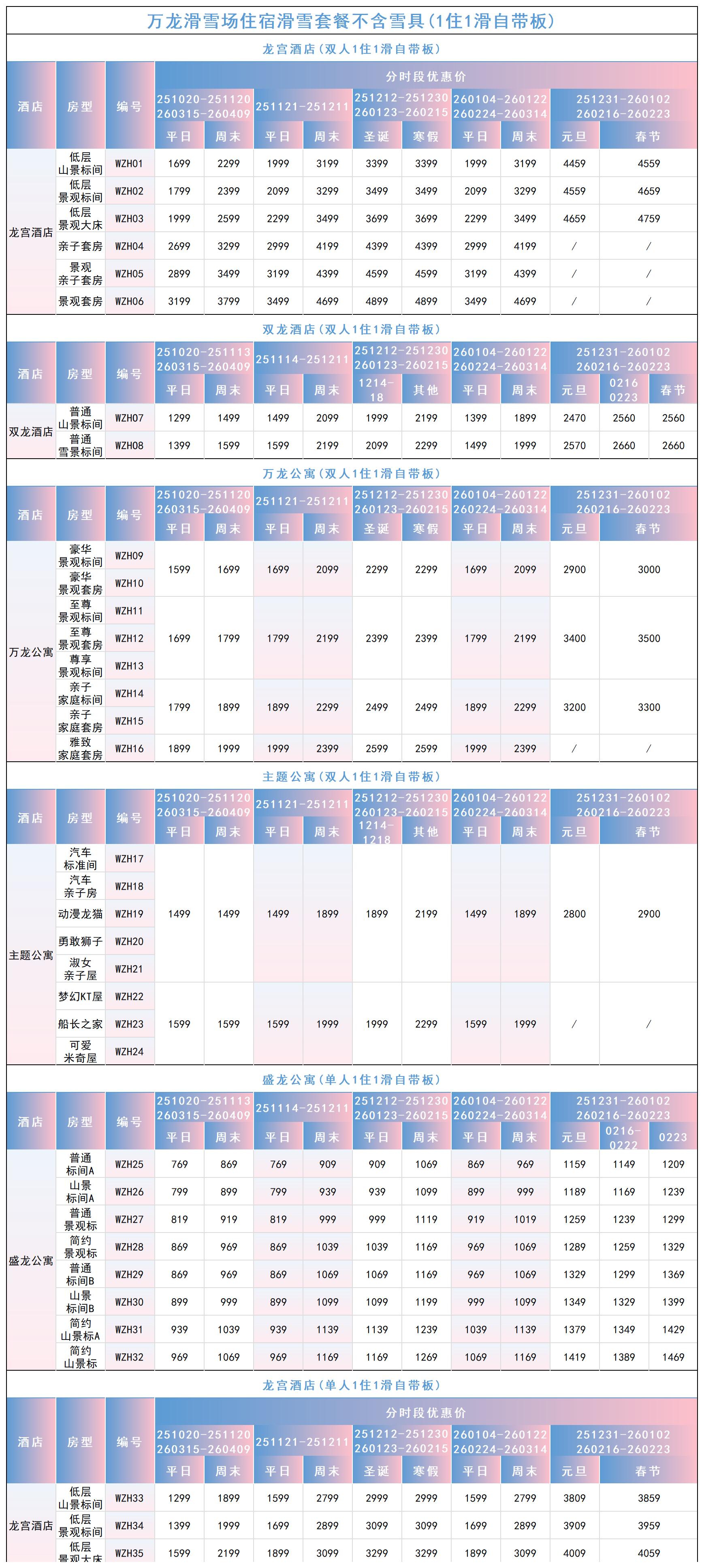 万龙滑雪场住滑套餐价格详情