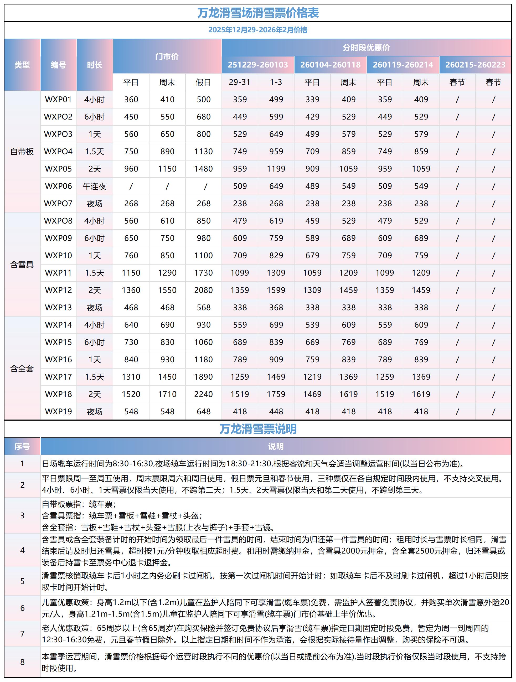 产品价格会根据客流量、雪场政策等有所浮动,准确价格以客服报价为准